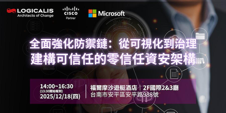 隨著生成式 AI 與混合工作環境加速發展,企業的資安挑戰也更加立體。 從端點安全到雲端資料治理,唯有同時「看得見、守得住、管得好」,才能真正實現零信任的資安藍圖。Loicalis Taiwan將藉助 Cisco & Microsoft 打造一套適合企業橫跨端點、網路與雲端的可信任防禦架構。